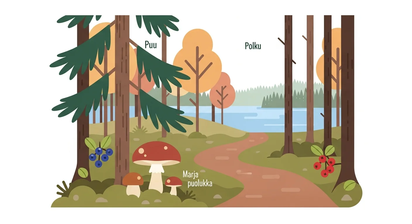 | Metsä | Forest | Metsä on Suomen vihreä kulta. (The forest is Finland's green gold.) |
